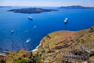 Well there is a path from Imerovigli to Fira. And it takes you right past the cable car. And from the path at the time we were there choosing a great composition is secondary to not getting crushed by the passing crowds!