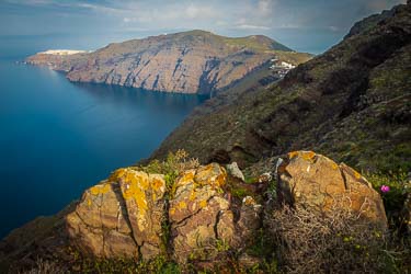 Happily for this image I have some shots of some of my gear on location on the Santorini caldera. Here you can see what I am pointing my camera at.